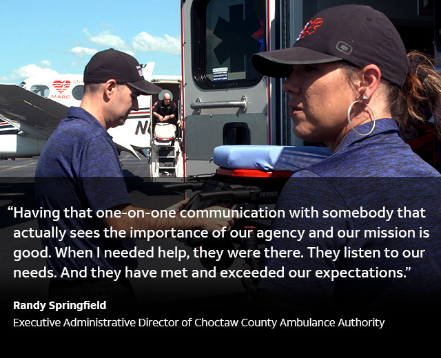 AT&T Professional Services helped Choctaw County Ambulance Authority implement AT&T Office@Hand and AT&T Dedicated Internet. Together the solutions are helping Choctaw County Ambulance Authority increase efficiency and enhance its ability to perform its potentially lifesaving services.