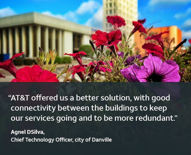 Danville chose AT&T Switched Ethernet with Network on Demand to connect its municipal offices. It also selected AT&T Dedicated Internet to deliver connectivity for city employees, and AT&T IP Flexible Reach for reliable voice services.