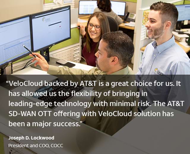 A unique collaboration between AT&T and VeloCloud produced the software-defined wide area network (SD-WAN) that delivers the security, agility, and management features that COCC needed.