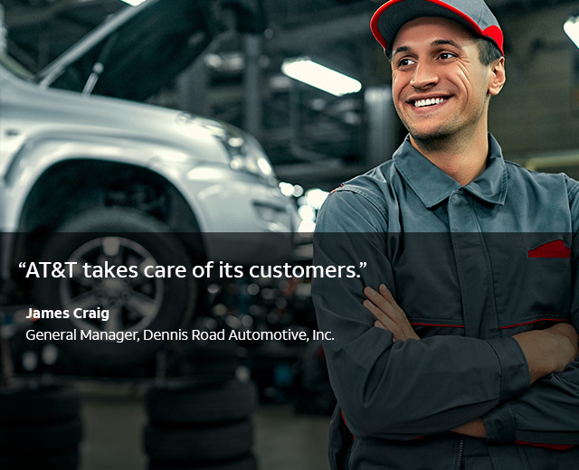 Solution AT&T Dedicated Internet Service delivers dedicated, highly secure connectivity that enables the important services the automotive shop provides. The shop also uses AT&T Office@Hand for voice, fax, text messaging, and audio and video conferencing.