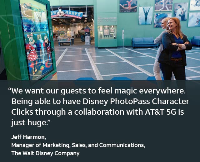 Disney Character Clicks offers an engaging photo opportunity. It requires robust, dependable connectivity. AT&T 5G delivers the speedy, reliable, secure connectivity the Disney Character Clicks technology requires.