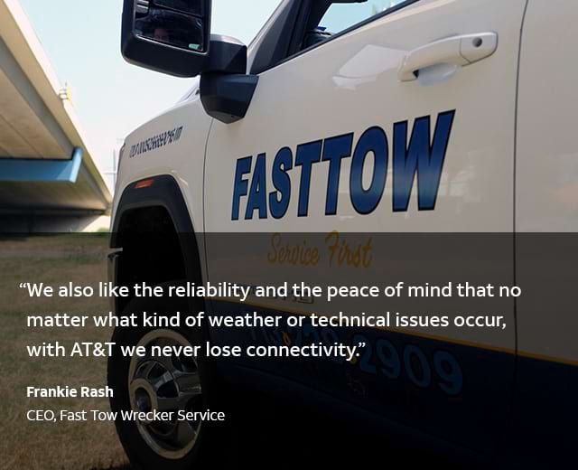 AT&T Dedicated Internet service with wireless backup supports Fast Tow with the fastest speeds, better availability, and guaranteed 100% uptime. AT&T Office@Hand gives Fast Tow cloud-based phone services that connect callers quickly with help.