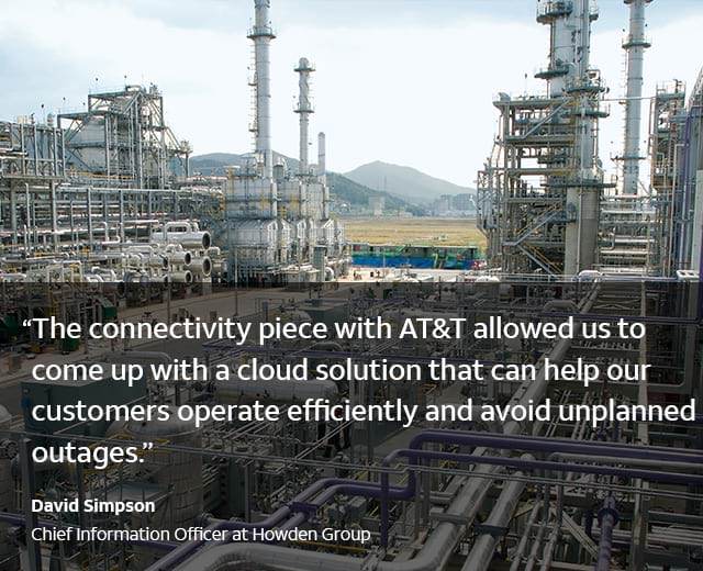AT&T Global SIM and satellite services deliver highly reliable connectivity. Multi-Network Connect allows Howden to manage its global IoT connections. They ramp up network performance and enhance security through AT&T NetBond® for Cloud.