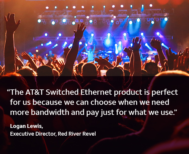 AT&T Switched Ethernet with Network on Demand provided Red River Revel with scalable, secure connectivity that powers digital wristband payments. The system delivers high-speed connectivity during festivals’ peak seasons while letting the staff manage bandwidth on demand.
